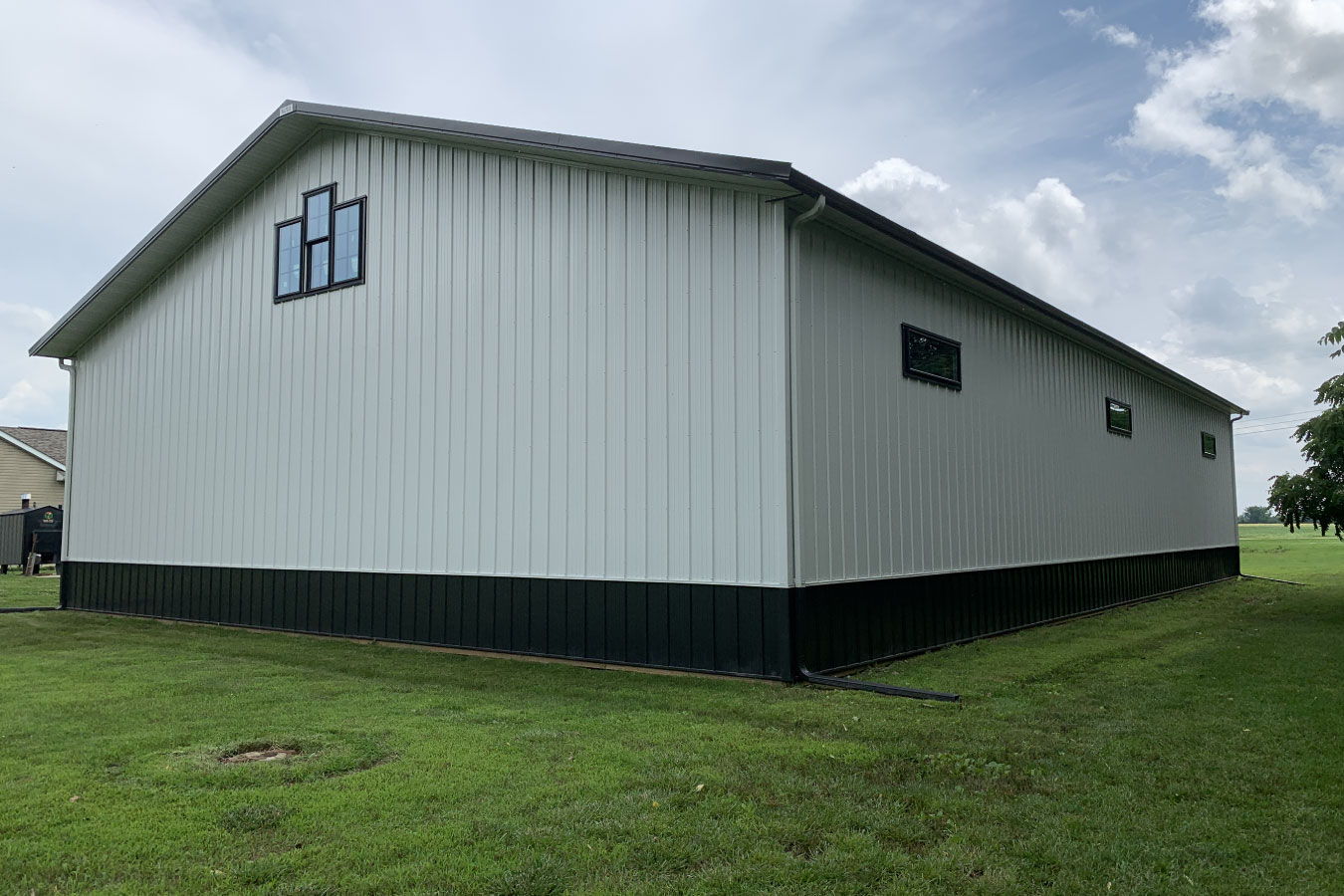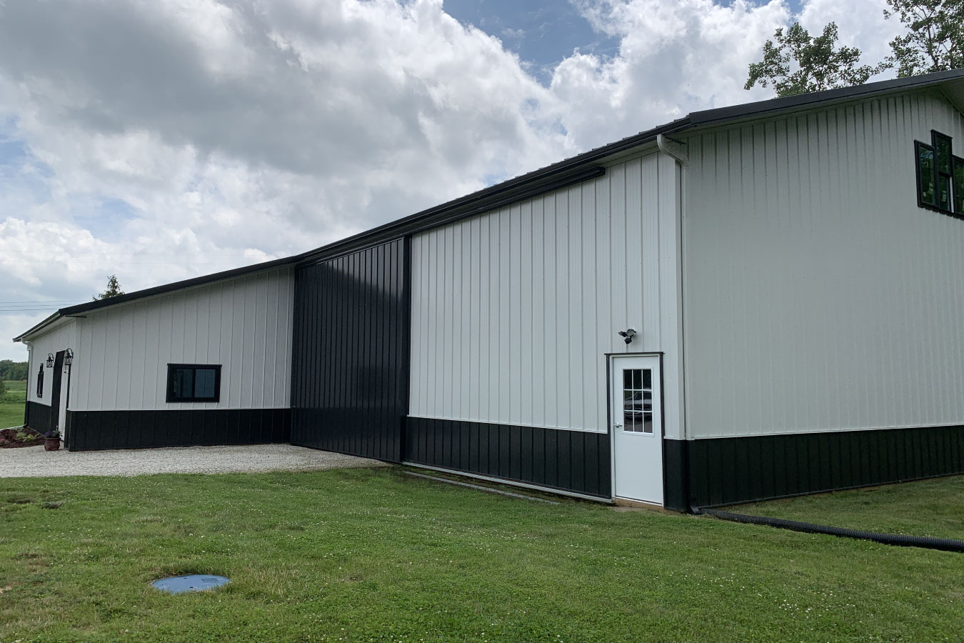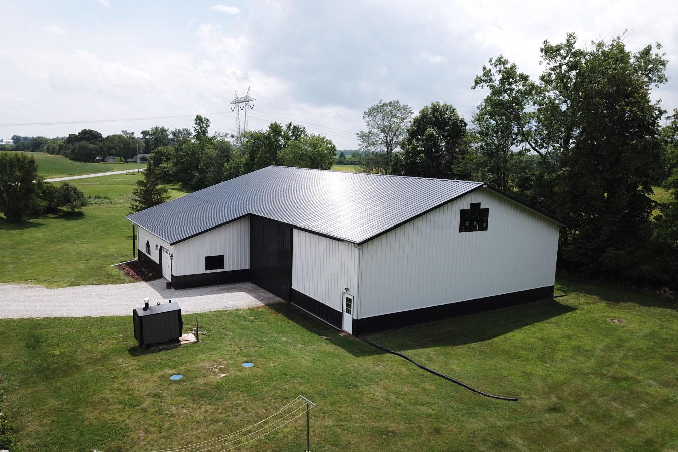 Finished with crisp white 28-gauge JWS steel panels accented by a black roof, wainscot, and trim, the building achieves a bold, modern farmhouse aesthetic that fits naturally into the rural Ohio landscape. The result is a hardworking structure that protects valuable equipment, elevates the property, and comes backed by Walters’ industry-leading warranty for long-term peace of mind.