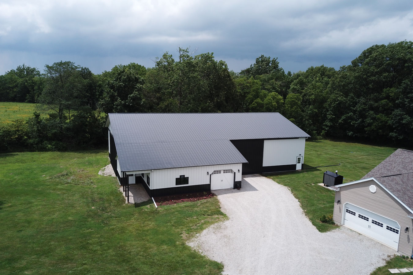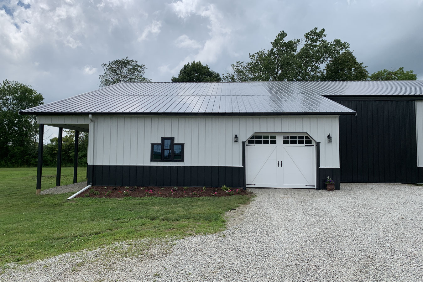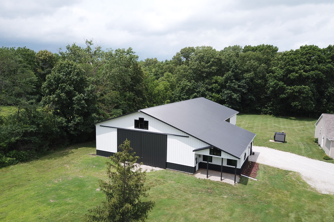 Finished with crisp white 28-gauge JWS steel panels accented by a black roof, wainscot, and trim, the building achieves a bold, modern farmhouse aesthetic that fits naturally into the rural Ohio landscape. The result is a hardworking structure that protects valuable equipment, elevates the property, and comes backed by Walters’ industry-leading warranty for long-term peace of mind.