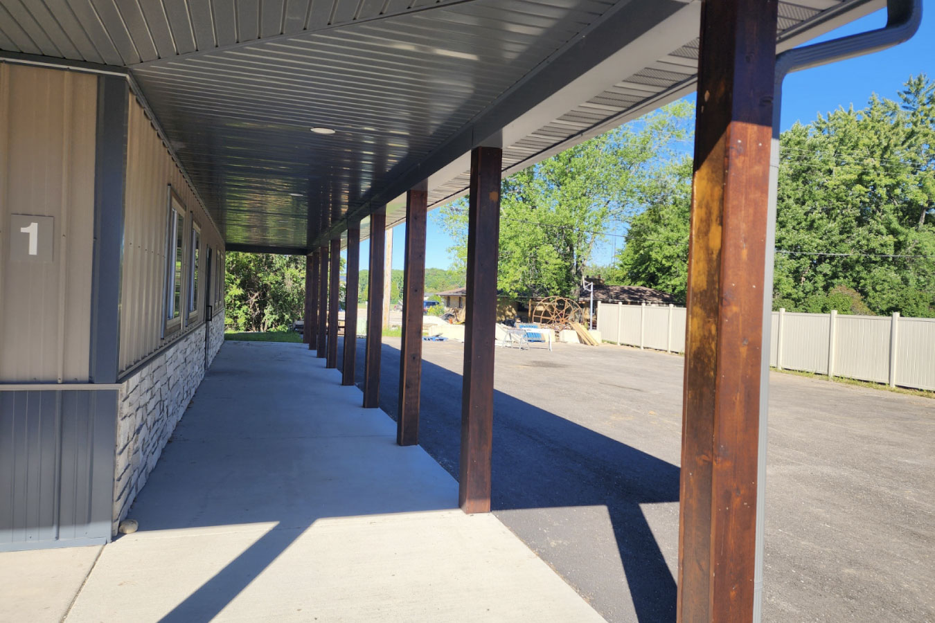 Every structure in the complex reflects Walters’ craftsmanship and commitment to quality. Featuring G-90 galvanized steel for long-lasting durability, 28-gauge steel panels (20.4% thicker than industry standard), and Southern Yellow Pine #2 or better columns, these buildings are made to withstand Wisconsin’s toughest weather — from hail and snow to year-round temperature swings.