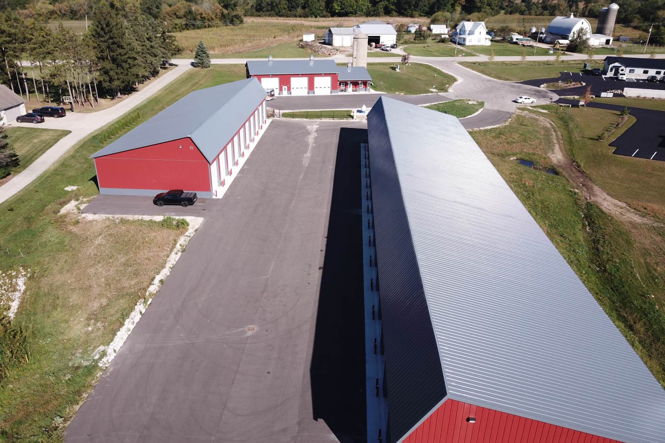 - Building Two (50′ x 150′ x 16′) – Features a solar front design with ten units (each 50′ x 15′), engineered to shed Wisconsin snow efficiently.