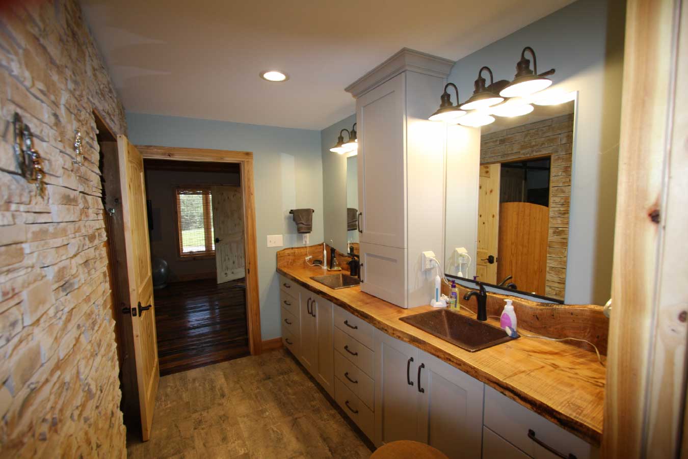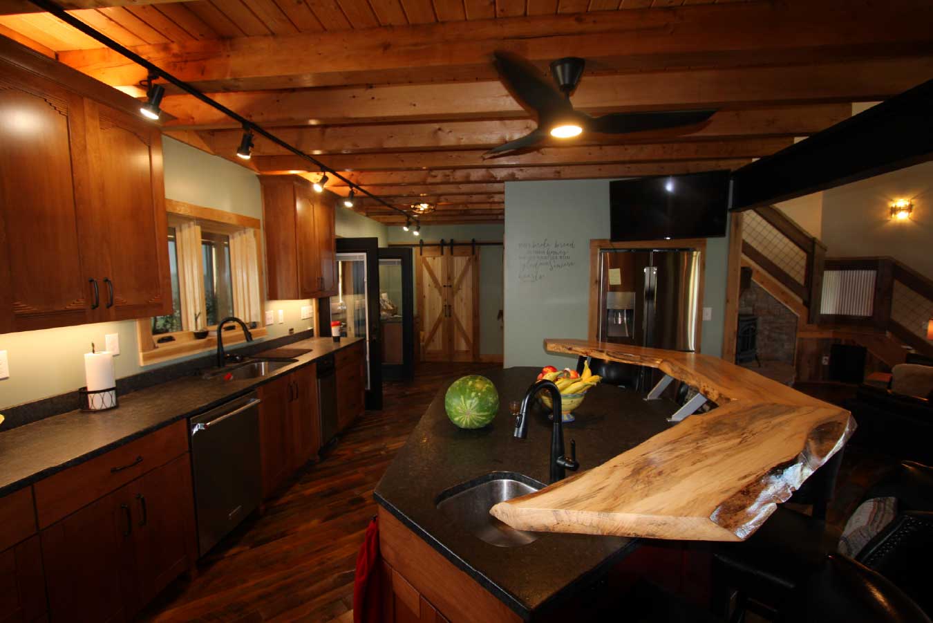 • Custom Interior Finishes: Reclaimed wood flooring and natural materials create a cohesive, high-end rustic aesthetic