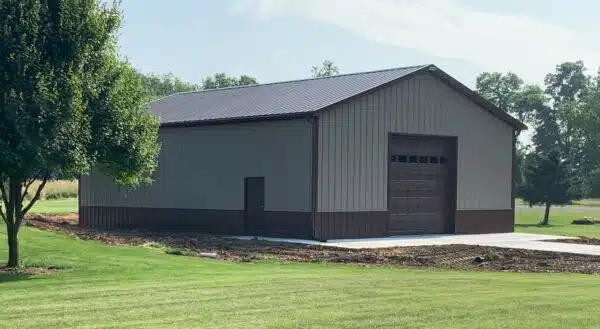 Most post-frame garages are clad in steel panels, which provide durability, low maintenance, and long-term weather resistance.